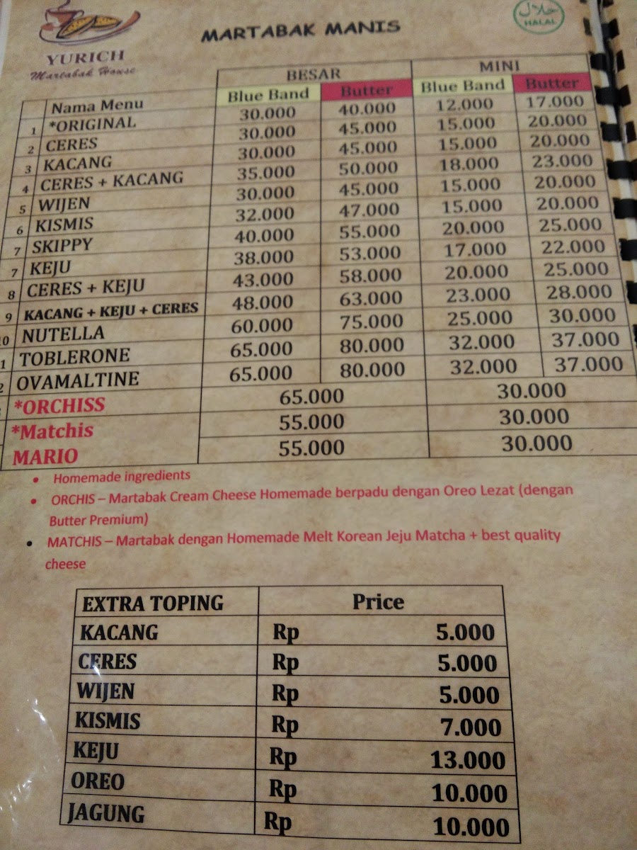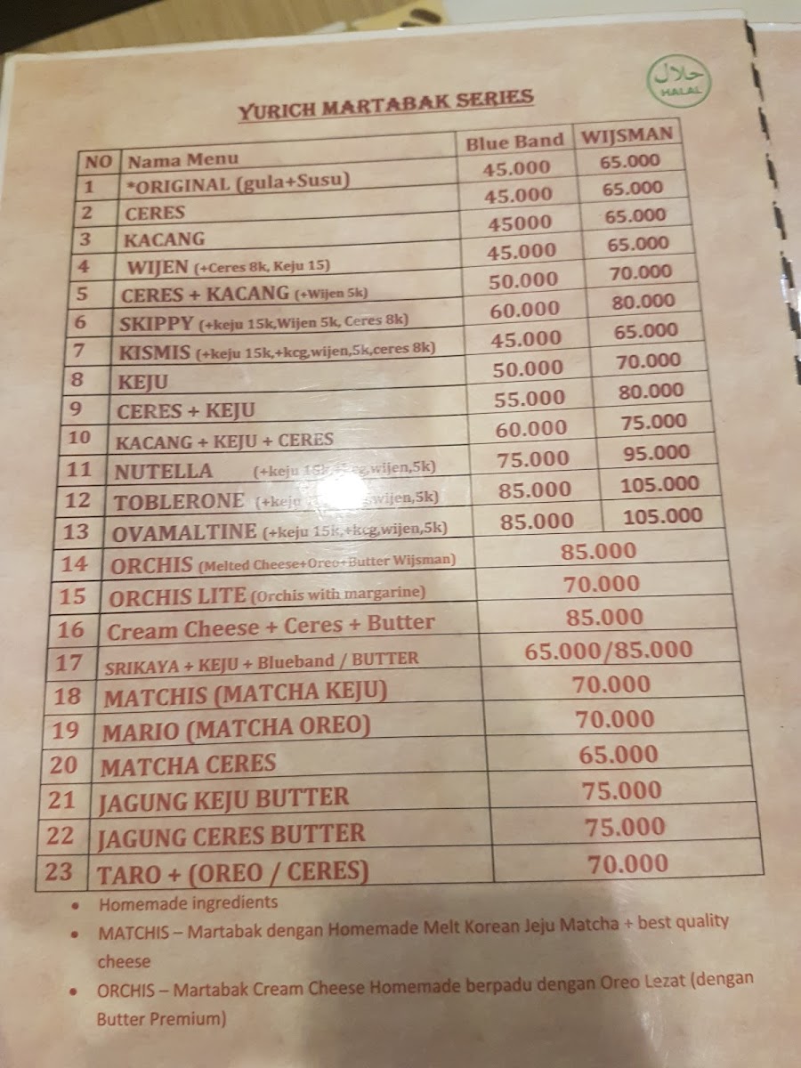 At Yurich Martabak & Kebab House, diners can expect a delightful fusion of flavors with a menu that brings together the best of Indonesian street food. With specialties like martabak, a crispy, stuffed pancake, and succulent kebabs grilled to perfection, there’s something to please every palate. Whether you’re in the mood for a savory meat-filled martabak or a deliciously seasoned kebab served with fresh accompaniments, every dish is packed with bold and aromatic flavors. The laid-back, welcoming atmosphere makes it a perfect spot for a casual meal with friends or a quick bite. Located in the heart of Medan City, this spot offers a convenient and satisfying option for anyone looking to indulge in some of the most iconic dishes of Indonesian cuisine. With a menu designed to satisfy both traditional cravings and adventurous tastes, Yurich Martabak & Kebab House Menu offers a memorable dining experience.